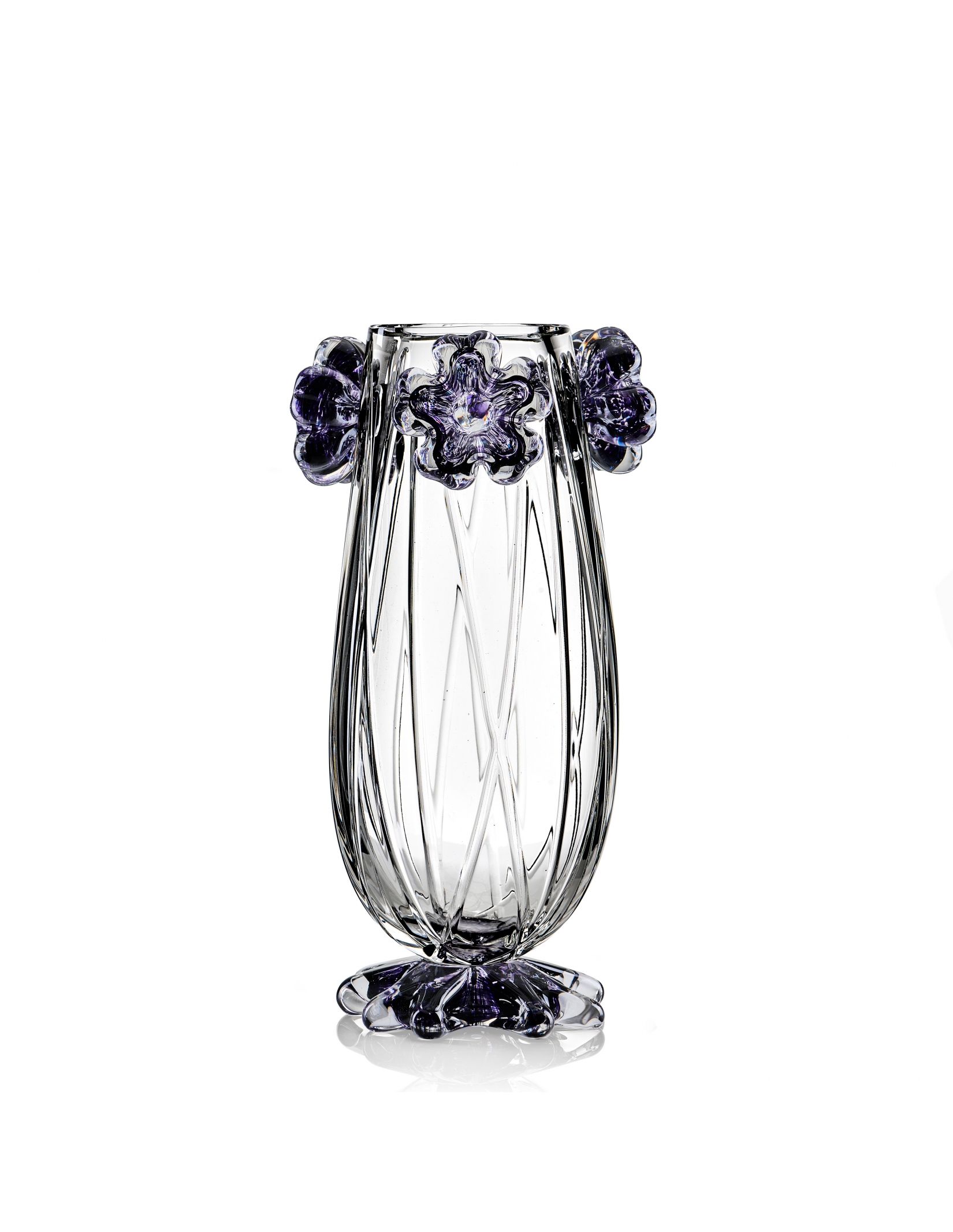 Cistus is a typical Mediterranean flower with a round and showy shape. In nature the flowering lasts only one day. This unique moment is now coming to life in crystal. Cistus collection is born composed by completed hand-free formed vase adorned by assorted flowers. Each piece is different to the other. Every petal, every flower is hand-formed respecting the natural fluidity of the incandescent crystal, the air held is vital soul. The softness of the curves enhances the shape to give spaces a flowering of light and colours.