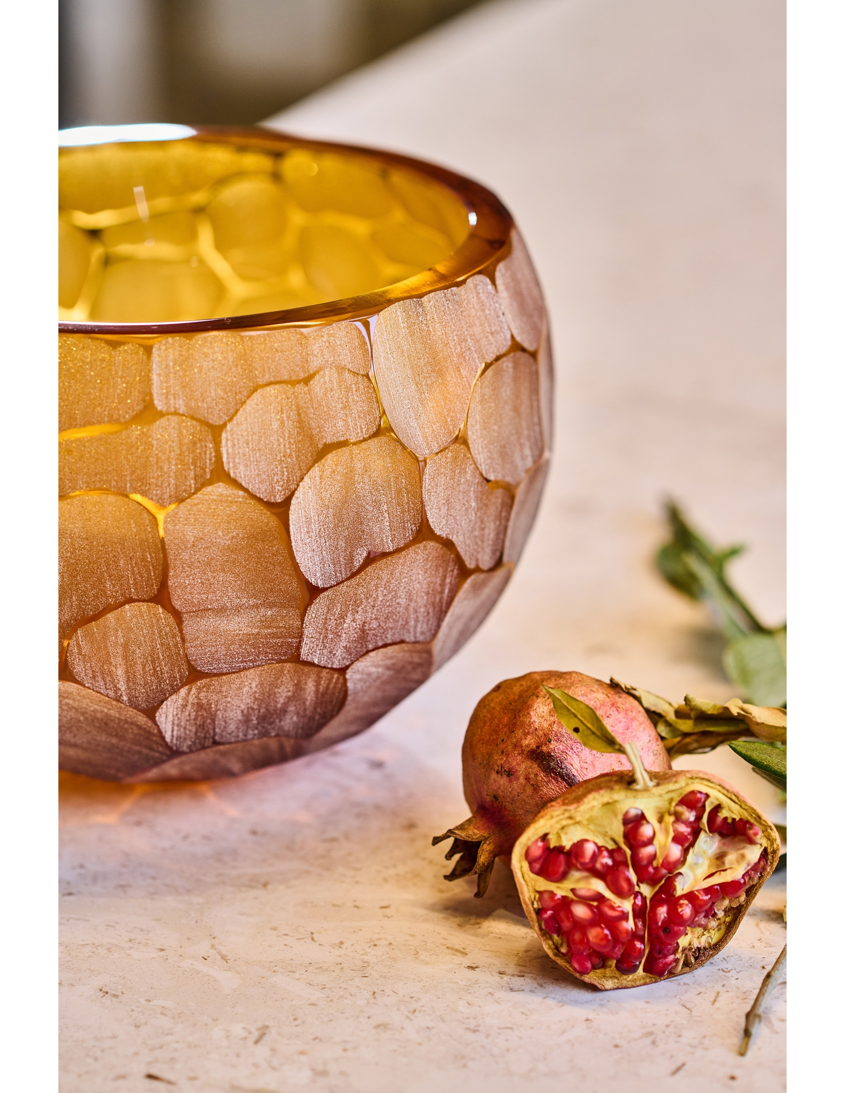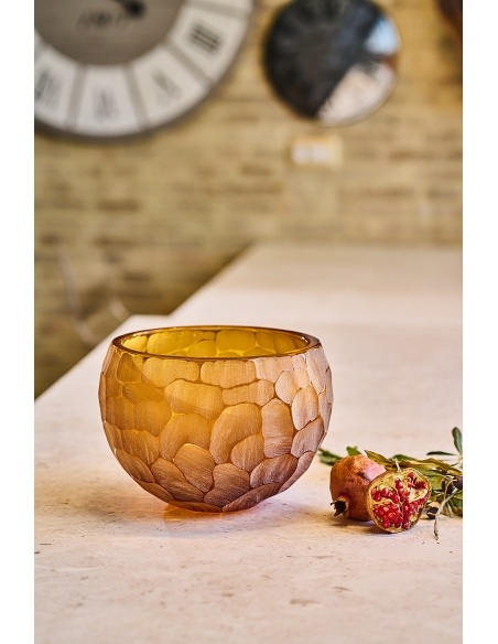 Amber or clear crystal bowl with over 24% of PbO completely mouth-blown and hand-cut.