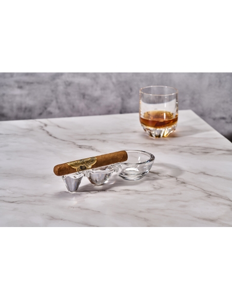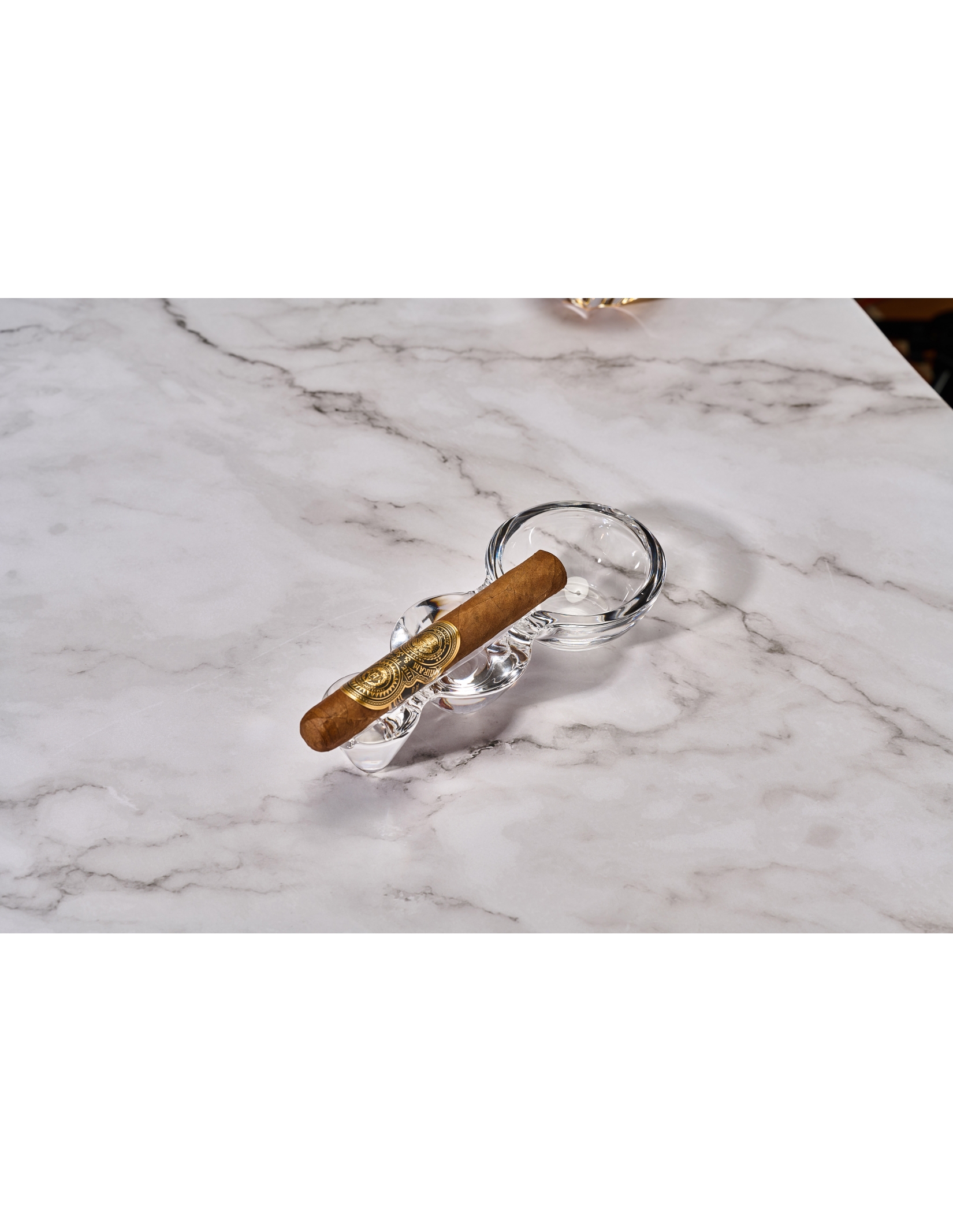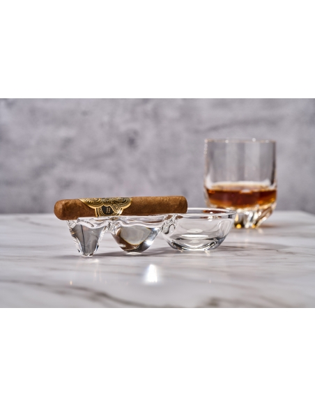 La collezione di posaceneri Tres unisce bellezza, emozione estetica e funzionalità. Soffiati a bocca e molati a mano, questo oggetto completamente artigianale è un posacenere sia per sigaro che per sigaretta. L'ampia superficie di appoggio infatti presenta delle scanalature che facilitano la circolazione dell'aria favorendo la giusta ventilazione lungo tutto il sigaro. Inoltre, la sua particolare forma ha una funzione anche ergonomica permettendo una presa ferma e facilitandone lo spostamento.